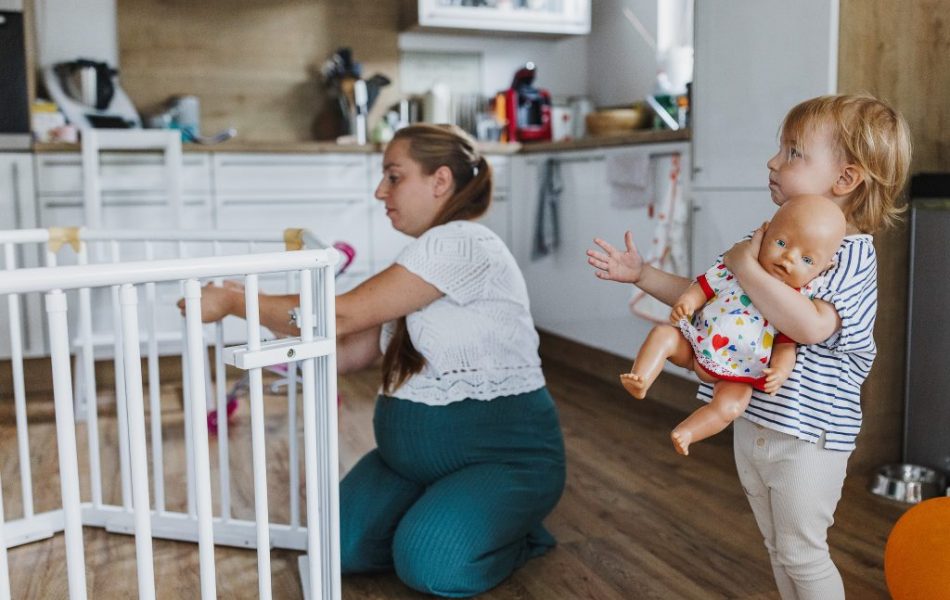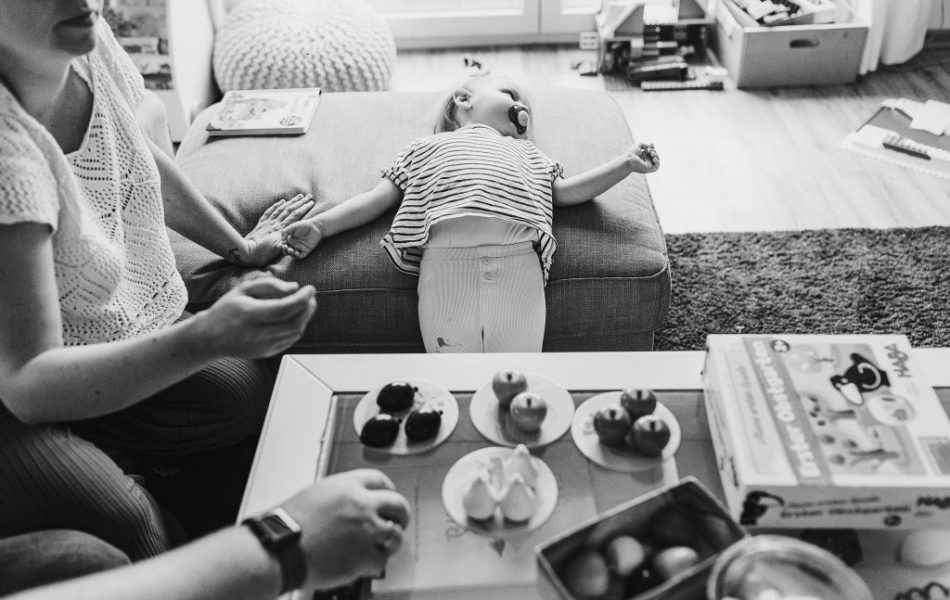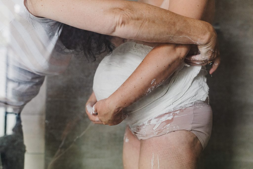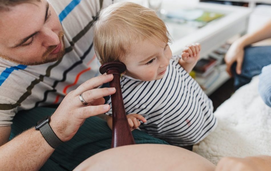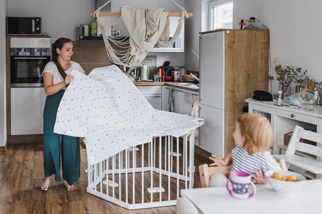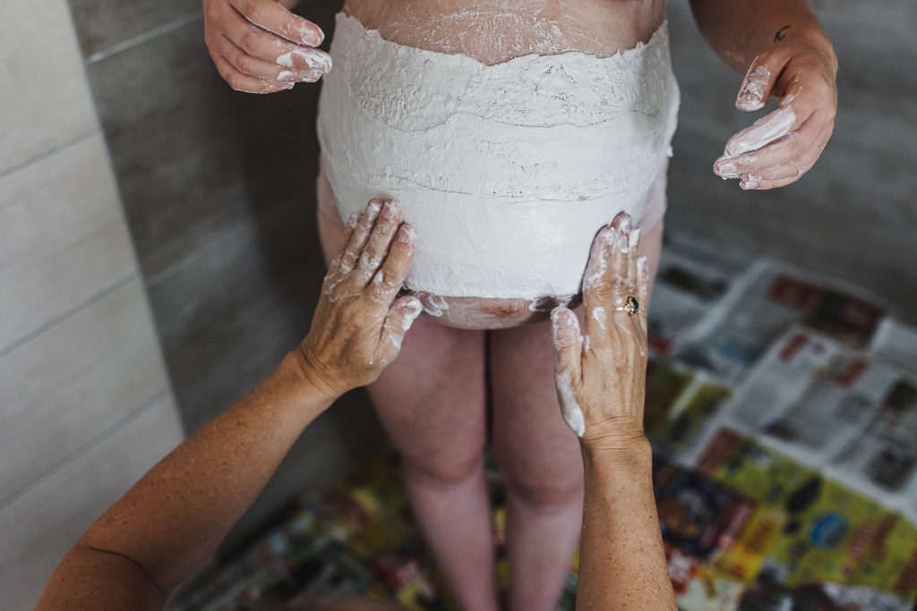 Für diese Familie ist es bereits die zweite Schwangerschaft gewesen. Die kleine Tochter war zu dem Zeitpunkt zwei Jahre alt und merkte natürlich schon, dass sich jetzt einiges zu Hause ändern wird. Neben all den Vorbereitungen hatte die Mama aber trotzdem noch ganz viel Zeit für sie und überall durfte sie mithelfen. Dem Papa stand sie fleißig zur Seite, als der Laufstall aufgebaut wurde und beim Besuch der Hebamme durfte sie auch mal am Bauch horchen und den Bauchumfang messen. Total spannend. Später schaute auch noch die Oma vorbei und gemeinsam wurde ein Gipsabdruck vom Babybauch gemacht. Dabei sind so schöne Erinnerungen entstanden, die man bei einem klassischen Shooting niemals bekommen würde. Da war meine Vorfreude auf die Wochenbett Reportage schon groß.